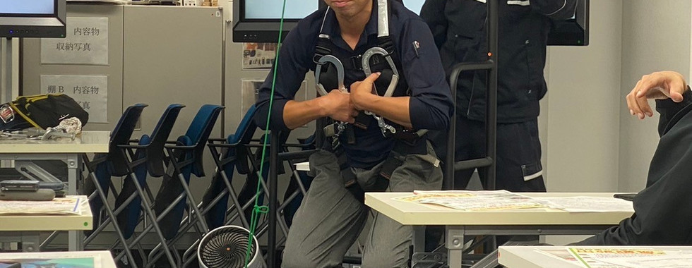 先日、一般社団法人日本プロ電気工事士協会さん主催の「フルハーネス型墜落制止用器具 特別教育」を全従業員受講してきました!